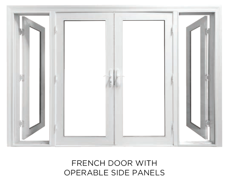 GS Series French swing patio doors feature outstanding vinyl construction, standard heavy duty hinges and are available in large sizes . GS Series patio doors are also available in optional exterior color finishes.
